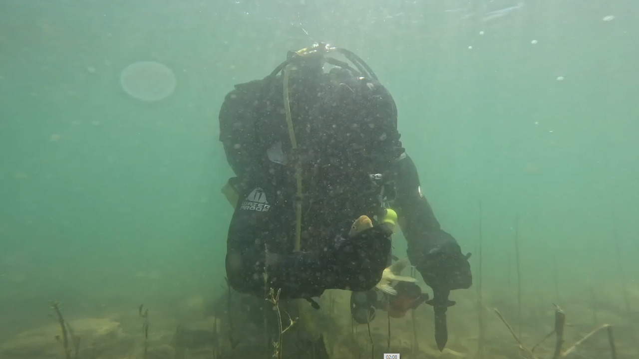 Dicle Baraj Gölü'ne eğitim dalışı yapan ve gölün derinliklerinde hayalet ağlara takılan balıkları fark eden SAK timi, bıçak yardımıyla ağları keserek balıkları tek tek kurtardığı anları su altı kamerasıyla kayıt altına aldı.