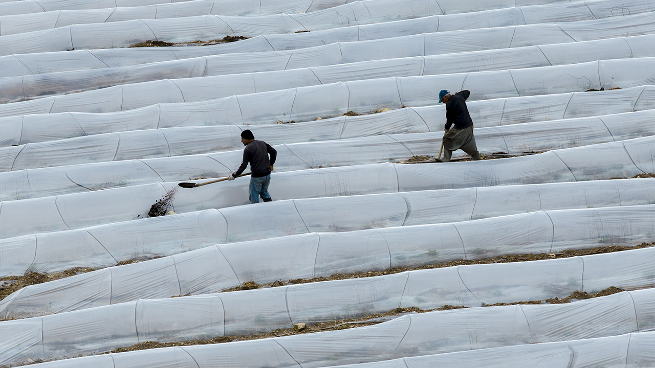 Tarlalarda görev yapan tarım işçileri gün boyunca fideleri kontrol altında tutuyor. Rüzgarın etkisiyle yer yer açılan naylon örtüler yeniden kapatılıyor ve toprakla sabitlenerek fidelerin korunması sağlanıyor.
