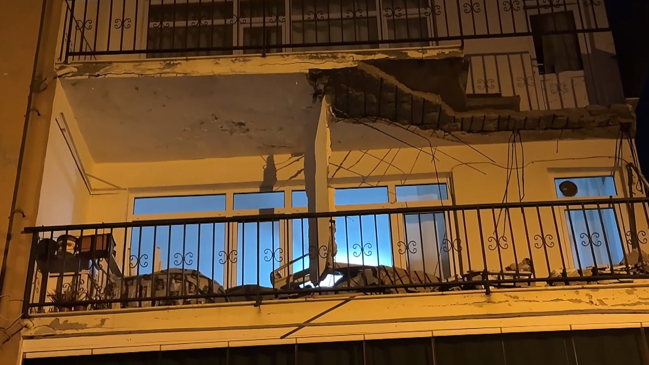 Çengelköy Mahallesi Kasım Sokak’ta 4 katlı apartmanın üçüncü katının balkonunun yarısı çöktü. Apartmandan seslerin geldiğini fark eden ve balkon zemininin çöktüğünü gören bina sakinleri dışarı çıktı.
