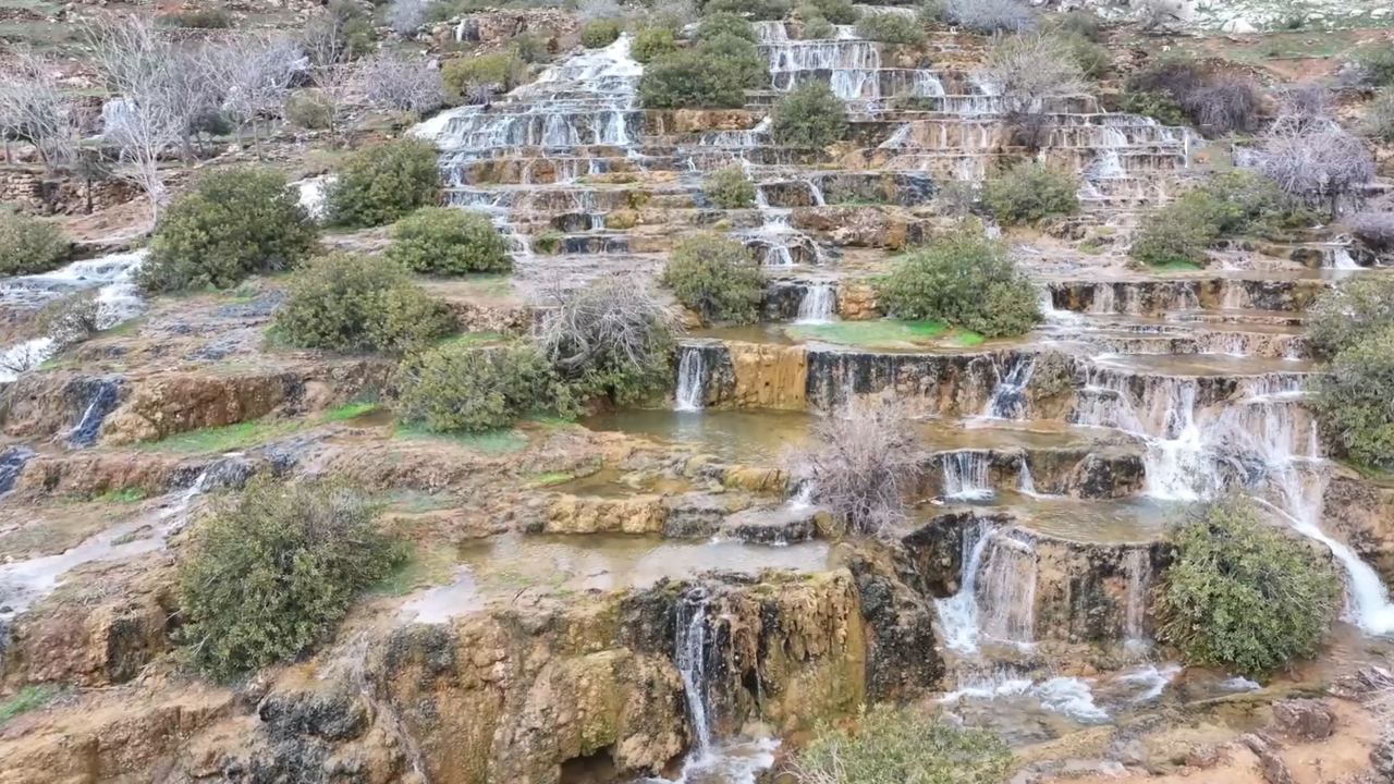 Mardin'in Kızıltepe ilçesinde geçmiş yıllarda yağış azlığı ve kuraklık nedeniyle kuruyan, bu yıl ise yağışlarla yeniden canlanan yörede "Emrud travertenleri" olarak bilinen su kaynağı da çağlayanlar ve şelaleler oluşturarak akıyor.