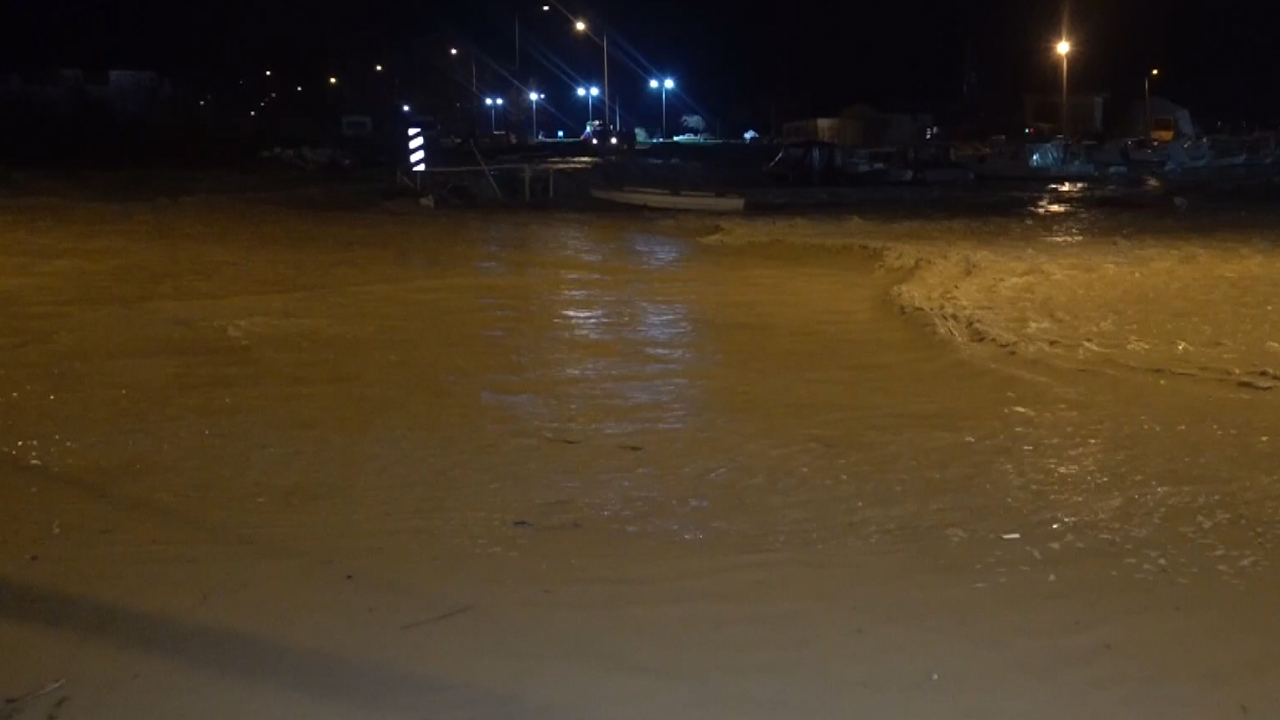 Su akışıyla taşan çay, balıkçı barınağına ulaşıp bazı teknelere zarar verdi. Geçen hafta yaşanan taşkında kapatılan yolun çevresi de suyla doldu.