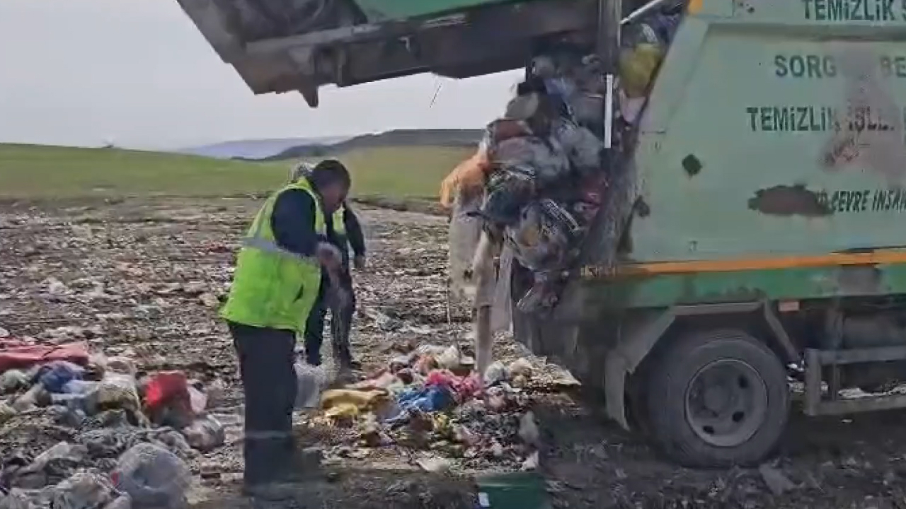 Sorgun Belediyesi temizlik işçileri, Yenimahalle mevkisinde çöp boşaltan kamyonda yaptığı aramada lahana poşetini buldu.