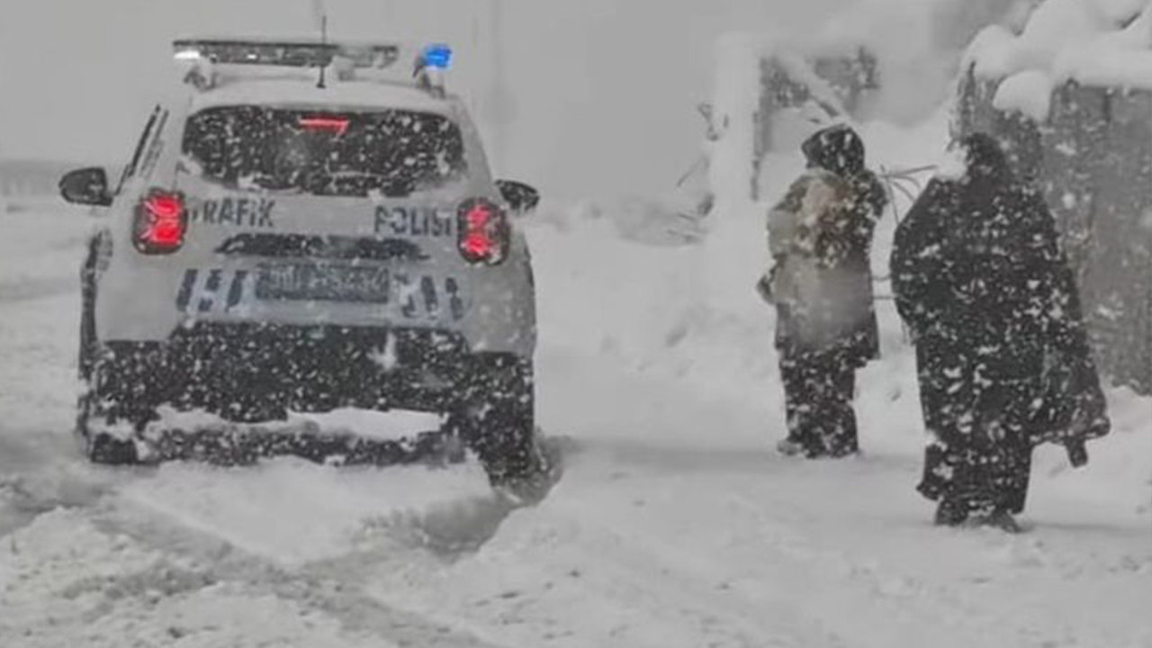Yolda güçlükle ilerleyen kadınları ve bebeği ekip aracına alan polisler, bu kişilerin gidecekleri yere ulaşmalarını sağladı.