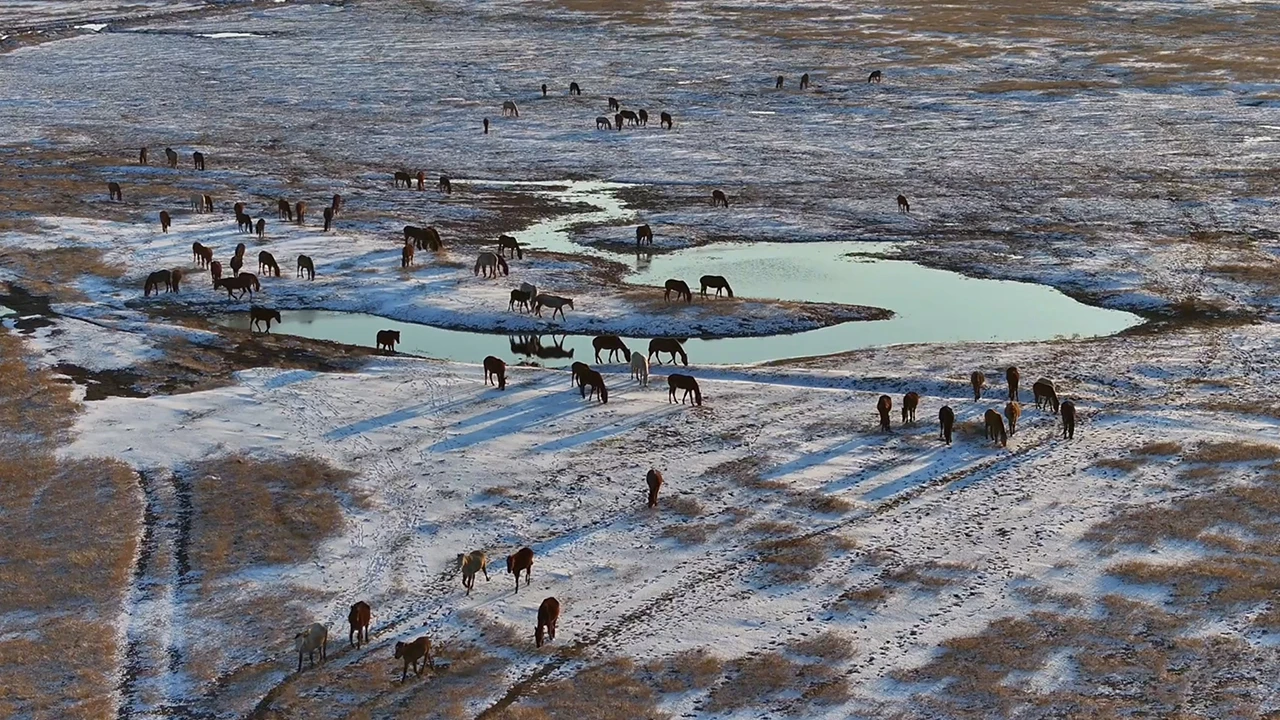 Türkiye'nin dört bir yanından fotoğraf tutkunlarının ziyaret ettiği Erciyes Dağı'nın eteğinde göçmen kuşlara ev sahipliği yapan Hürmetçi Sazlığı'ndaki yılkı atları dronla görüntülendi.